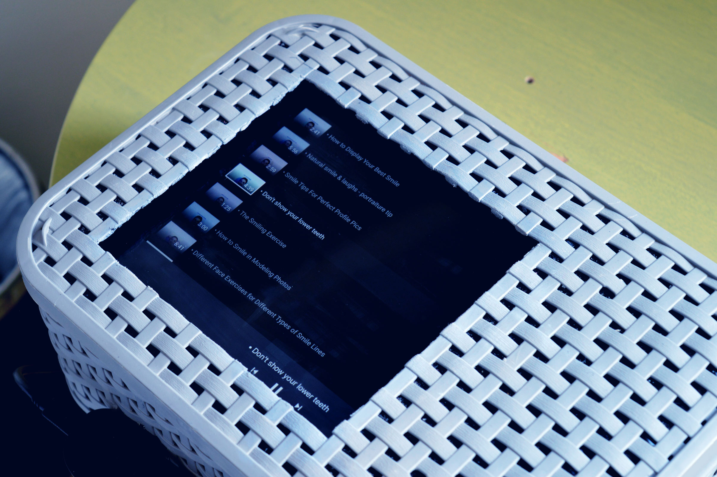 The artist explores through this work the absurdity of the need of having to learn how to smile. It takes a journey to find out how teaching this to a young woman is affecting her on how to act properly in different situations. Tutorials teach how to smile naturally, attractively, to get the attention of men, how to do face yoga for smiling, to find your own best smile and display it, achieve a symmetrical smile, keep a winning smile during a beauty pageant. What kind of a smile is suitable in modeling, during your speech or in your next profile photo!? Lastly, what you should not do when smiling, like showing your lower teeth or creating wrinkles with your smile.